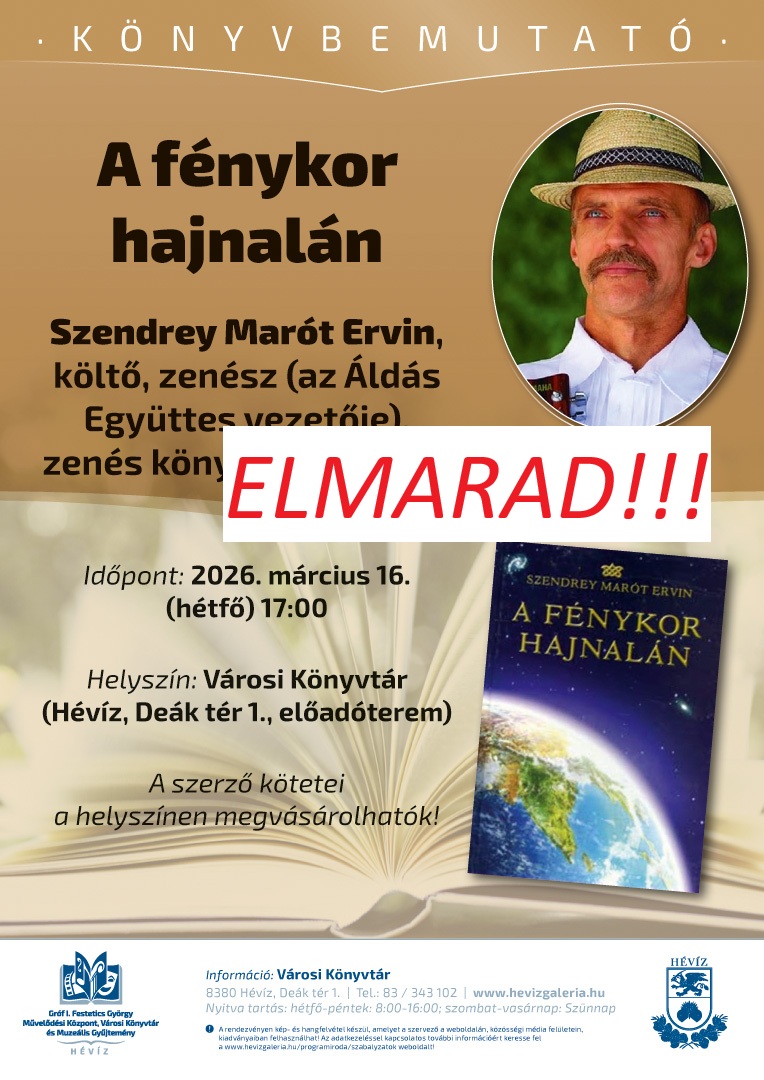 Rendezvényeinken kép- és hangfelvétel készülhet, amelyet a szervező a weboldalán, közösségi média felületein, kiadványaiban felhasználhat! Az adatkezeléssel kapcsolatos további információért keresse fel a http://www.hevizgaleria.hu/programiroda/szabalyzatok weboldalt!